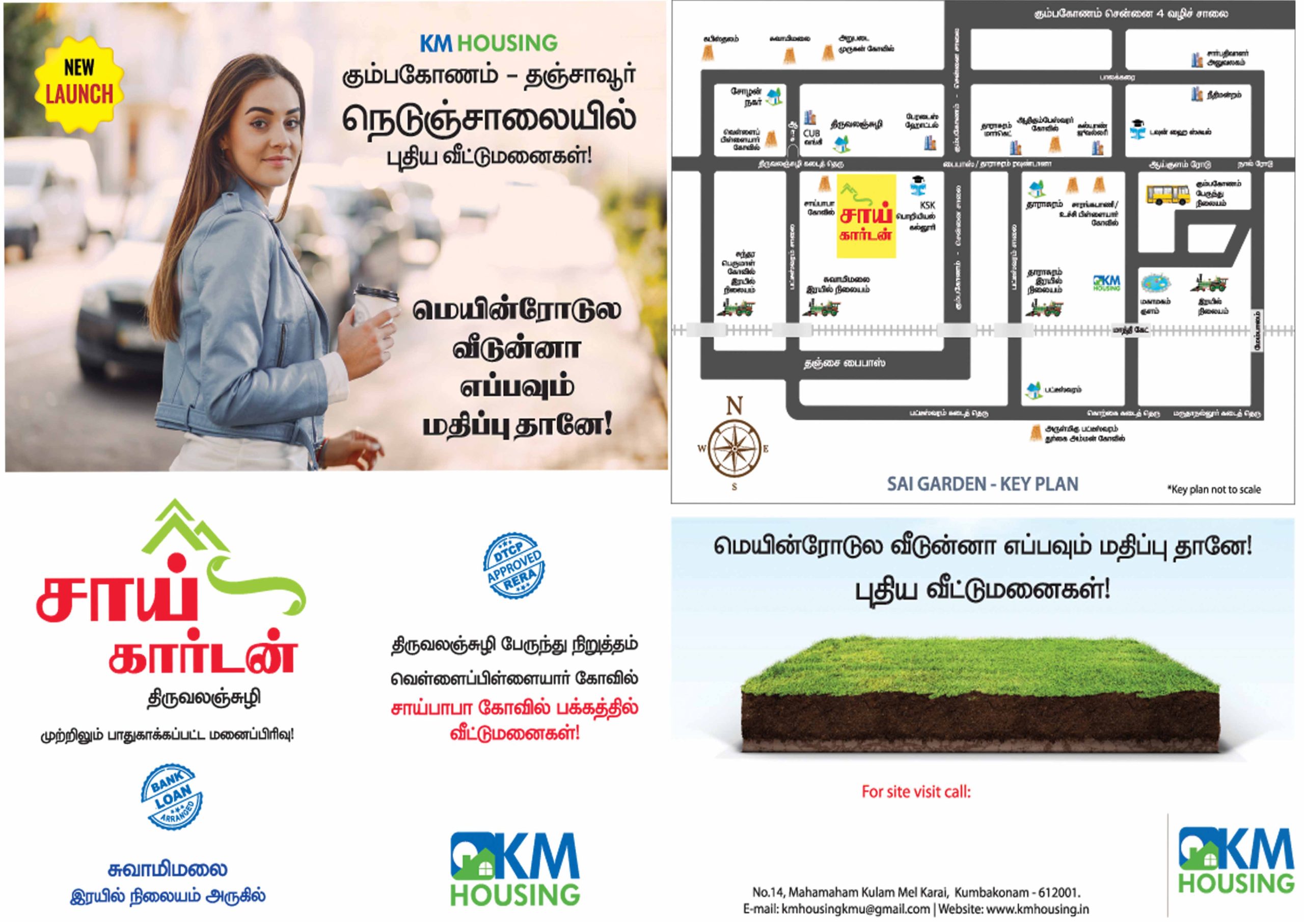 Surrounding Residences & places: on Thanjavur – Kumbakonam Main Road Near 5 km from Railway Station bus stand, Temple, Houses ,hotels ,shops, 5 km Taluk Office and Court, BDO Office, 2 km Government and Private Hospital